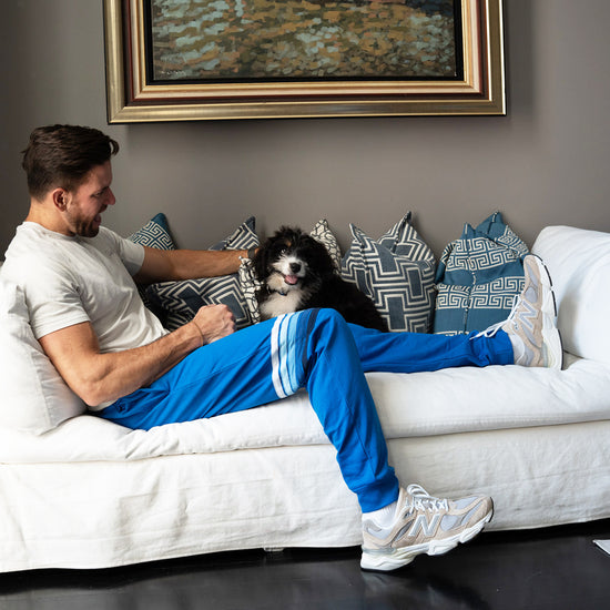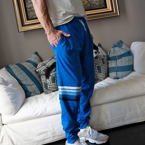Sail easy in the Vintage Leg Stripe Joggers in Regatta, a unisex essential designed for elevated comfort. Crafted from soft cotton french terrycloth for the perfect worn-in sweatpants fit.